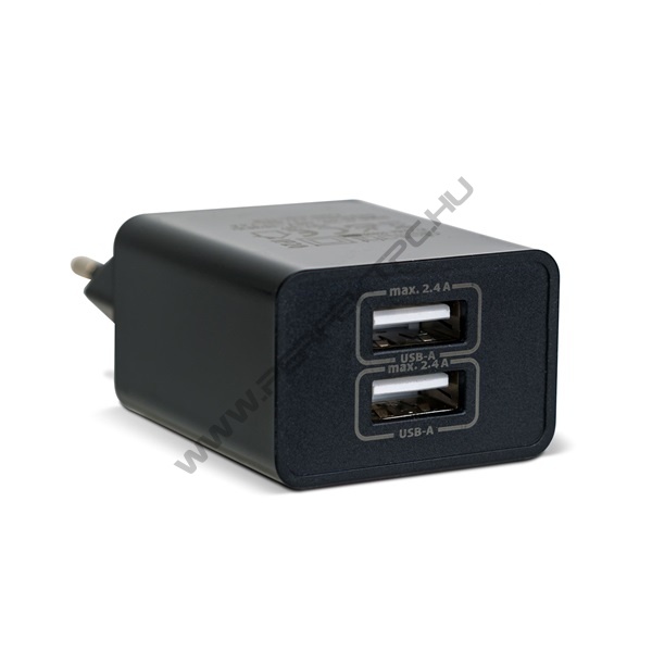 Delight Telefon töltő - 2db USB, 5V/2,4A, Fekete