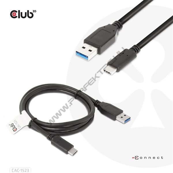 Club 3D Kábel - CAC-1523 (3.1 USB-C Gen 2 to 3.1 USB-A Gen 2, 10Gbps, 60W PD2.0, Bidirectional, 4K60Hz, M/M, 1m)