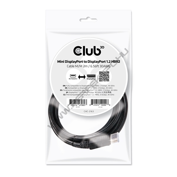 A Club 3D Mini DisplayPort™ to DisplayPort™ 1.2 kábel lehetővé teszi a Mini DisplayPort™ forráshoz történő csatlakozást monitorhoz vagy más DisplayPort™ eszközhöz. Rendelkezik egy záró mechanizmussal a biztos csatlakozásért. Egyszerűen nyomja meg a beépített gombot a csatlakozó oldásához. A kábel 30AWG és teljesen bidirekcionális. Az UltraFlex borítás védi a kábelt a hajlások és deformációk okozta sérülésektől.