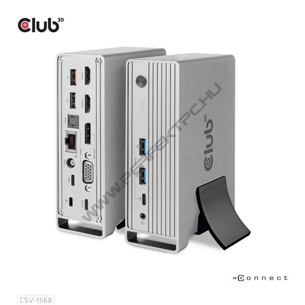 A Club 3D CSV-1568 USB Gen2 Type-C hármas kijelzős DP™ Alt mód + intelligens PD töltődokkoló 120 wattos tápegységgel egy integrált megoldás, amely egyesíti a videót, adatot, tápellátást, Ethernetet és hangot. 4 videóval rendelkezik (MST módban egyszerre 3 videót ad ki) a videó átvitelhez, 4 USB adatportot (2 USB-A 10G, 1 Type-C 10G, 1 USB-A 5G) az adatátvitelhez, 1 USB-A intelligens töltőportot a gyors töltéshez, 1 Gigabit Ethernet a szupergyors audióhoz, 3 audió porthoz Ezenkívül ez a dokkoló kettős tápcsatlakozóval van felszerelve (C típusú PD töltés vagy 120 W-os DC tápegység).