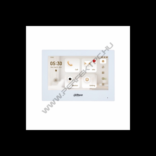 Dahua IP video kaputelefon - VTH2621GW-P (beltéri egység, 7" touch screen, 1024x600, PoE, SD, I/O, H.265, fehér)
