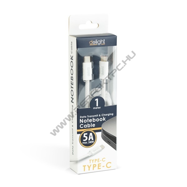 Delight kábel - Type-C - Type-C töltőkábel - adatkábel 5 A - 240 W, 1m, fehér