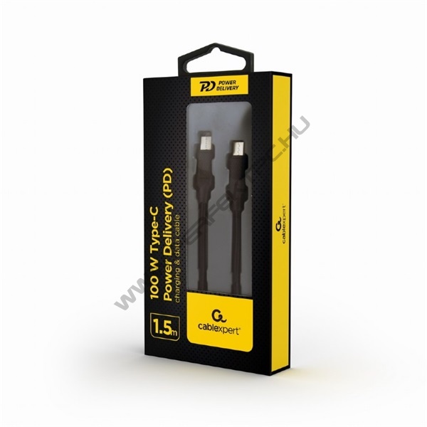 Gembird kábel - USB Type-C apa - USB Type-C apa 2.0 adat+töltőkábel 100W, Gyorstöltés, 1,5m, fekete)