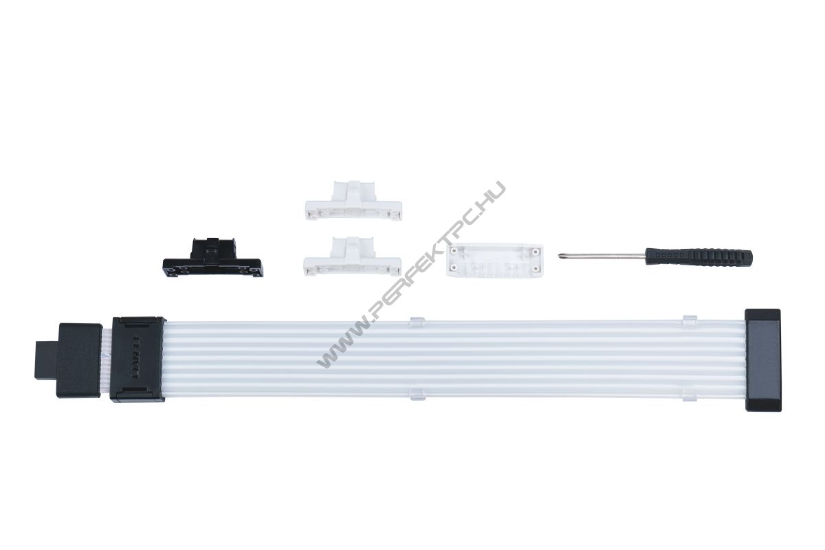 GPU-hosszabbító kábel megcímezhető RGB-megvilágítással Rendkívül fényes a 116 LED-nek köszönhetően Tápellátás a világításhoz közvetlenül a tápegységről, kevesebb kábel esetén Válasszon az előre elkészített fényeffektusok közül, vagy alkossa meg saját megjelenését A kiváló minőségű tok különösen autentikus színeket tesz lehetővé Robusztus kábelkapcsokkal az optimális kábelrendezés érdekében Lenyűgöző RGB megvilágítás gamer PC-dhez A Strimer GPU kábel vezeték nélküli változata végtelen fényhatásokat biztosít. Összesen 116 egyenként címezhető RGB LED világítja meg a 34 cm hosszú hosszabbító kábelt. Karcsú és átgondolt kialakítás A lehető legnagyobb színtartóság biztosítása érdekében a Strimer vezeték nélküli készülékek fehér köpenyre támaszkodnak. Az UV-álló szilikonból készült tejfehér diffúzor egyenletesen osztja el a fényt. Ezenkívül egy fehér sín megváltoztatja a sugárzási szöget úgy, hogy az egyes vezetékek ne befolyásolják egymás színhatását az oldalra sugározva. Teljesen elrejtik az alatta lévő hosszabbítót is. Vezeték nélküli kapcsolat: Egyszerű és hatékony A Strimer vezeték nélküli sorozat forradalmasítja a rendszert a 2,4 GHz-es vezeték nélküli kapcsolattal. A vadonatúj L-Wireless vezérlővel a LED-világítás zökkenőmentesen és vezeték nélkül vezérelhető az alaplapról. A vezérlő a jelet a hátoldalon lévő USB-porton keresztül vagy belsőleg, az alaplap 9 tűs fejlécén keresztül kapja, és így minimalizálja a kábelek számát a rendszerben. Ez sokkal könnyebbé teszi a kábelkezelést, és az értékes USB-portokat szabadon hagyja más eszközök számára. Tápellátás közvetlenül a tápegységről A Strimer Wireless másik új jellemzője az áramellátás. A korábbi verzióktól eltérően, ahol a LED-eknek külön tápegységre volt szükségük a vezérlőtől vagy a tápegységtől, a Strimer Wireless tápellátása közvetlenül a hosszabbító kábelről és magáról a tápegységről történik. Ez nem csak jelentősen csökkenti a kábelrengeteget az Ön esetében, hanem leegyszerűsíti a Strimer vezeték nélküli kábelek telepítési folyamatát is. Műszaki adatok Méretek: 382 x 42 x 15 mm (H x Sz x M) Kábelhossz: 340 mm Szín: Fehér (ujjak) Anyag: szilikon (TPE) LED-ek száma: 116 Tápkábel csatlakozások: 1x 12V-2x6 dugó, 1x 12V-2x6 aljzat Tápegység világításhoz: Közvetlenül a tápegységről