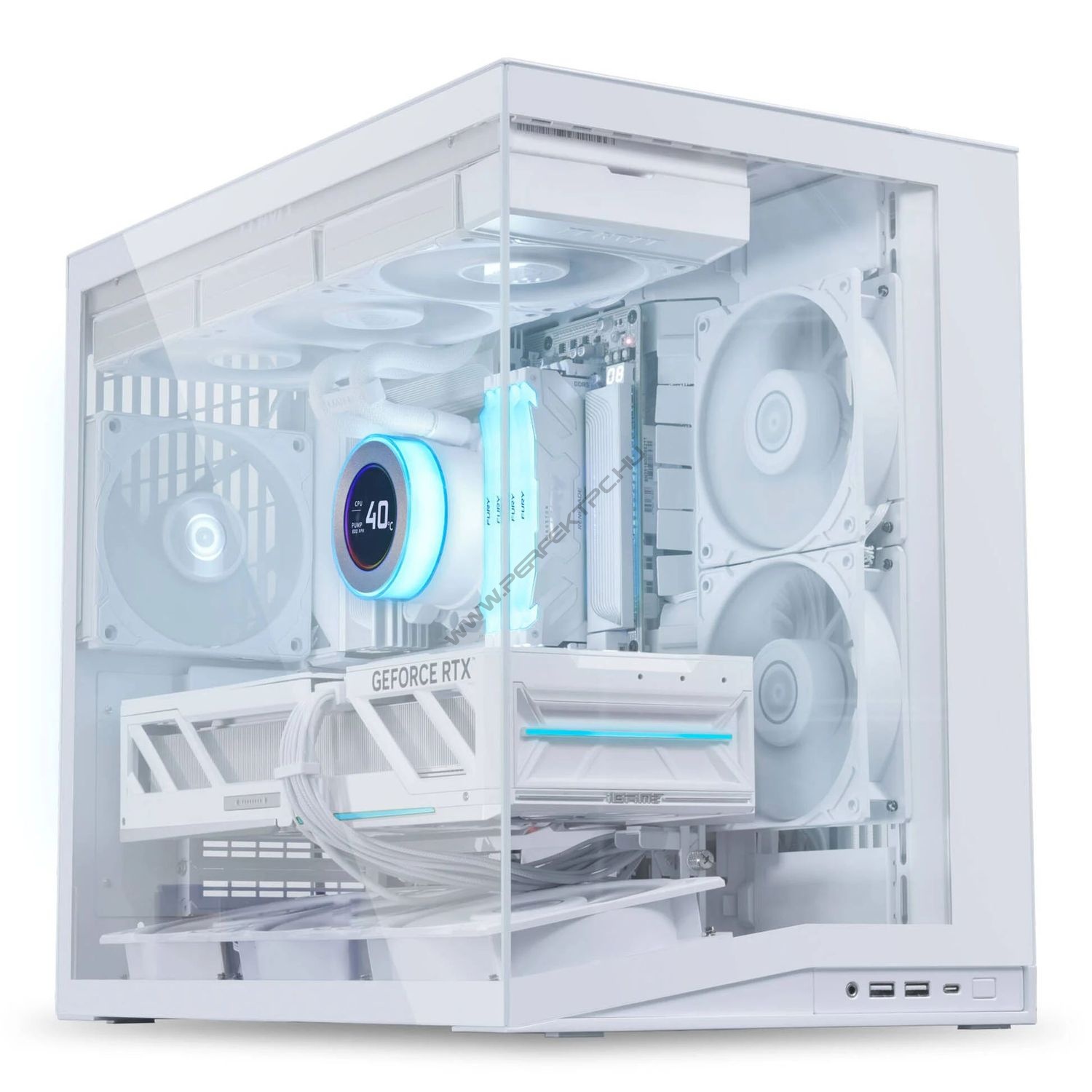 Lian Li O11D Mini V2 Flow példahardverrel Az oldalsó és elülső edzett üvegpanellel felszerelt Lian Li O11 Dynamic Mini V2 Flow lehetővé teszi, hogy látványosan bemutasd a géped belső világát. Kompakt méretének köszönhetően könnyedén elfér az asztalodon, és így a gaming setupod látványos középpontjává válik – mindezt anélkül, hogy a belső térben kábelrengeteg rontaná az összképet. - Kompakt kialakítás: Kis helyigény az íróasztalon - Hely a csúcskategóriás hardvereknek: Tágas belső tér nagy teljesítményű alkatrészek számára - Rendezett kábelezés: Kábelrögzítők és back-connect kialakítású alaplapok támogatása a letisztult vezetékezéshez - Mellékelt GPU-rögzítők: A grafikus kártya vízszintesen és függőlegesen is beszerelhető - Porvédelem: Több ponton elhelyezett, könnyen tisztítható porszűrők - Öt előtelepített ventilátor: Három darab 120 mm-es ventilátor alul, kettő oldalt – mind Reverse-Blade kialakítással Lian Li O11D Mini V2 fehér színben, kábelrögzítőkkel A ház többféle kábelrögzítési lehetőségének köszönhetően könnyedén megvalósítható a tiszta, átlátható kábelezés. A beépített tartó a nehéz 24 tűs ATX tápkábel számára biztosítja, hogy az stabilan és rendezetten a helyén maradjon, míg az okosan elhelyezett rögzítőszíjak a többi vezetéket fogják össze. A meghajtórekeszek ráadásul remek lehetőséget nyújtanak a kábelek elrejtésére is. Így a kábelmenedzsment igazán egyszerűvé válik – akár az első gaming gépedet építed kezdőként, akár tapasztaltként már unod az időrabló vezetékrendezést. - Megfelelő hűtés, még teljes terhelés mellett is - Összesen akár 9 ventilátor elhelyezésére van lehetőség - Hely két vízhűtéses radiátor számára - Mesh panel a tetőrészen - Porszűrő az alsó részen A ventilátorok és a radiátorok gondoskodnak róla, hogy a géped akkor is megfelelően hűtött maradjon, amikor maximális terhelésen pörög. A tetőn található mesh panel és az alul elhelyezett porszűrő segít csökkenteni a porfelhalmozódást a házon belül – ezáltal meghosszabbítva a hardvered élettartamát. Lian Li O11D Mini V2 Flow ventilátorokkal A Flow verzióhoz gyárilag öt darab, 120 mm-es ventilátor jár. Ezek fordított lapátkialakítású („Reverse Blade”) modellek, amelyek egyszerre biztosítják a tiszta, esztétikus megjelenést és a hatékony légáramlást – így a teljesítményből semmit sem kell feláldoznod a design oltárán. Maximális teljesítményre tervezve – elegendő hellyel a nagy méretű GPU-k számára A ház belső kialakítása lehetővé teszi akár 400 mm hosszú grafikus kártyák telepítését – vízszintesen vagy függőlegesen, ahogy csak szeretnéd. A mellékelt GPU-rögzítők mindkét szerelési mód esetén biztosítják a stabil elhelyezést, így teljes szabadságot kapsz a konfigurálás során. Műszaki adatok Szín Fő szín: Fehér Méretek Hosszúság / Mélység: 423,6 mm Szélesség: 273,3 mm Magasság: 391,95 mm Ház Ház típusa: Mini ház Alaplap támogatás Kompatibilis alaplaptípusok: ATX, Micro-ATX, Mini-ITX Maximális alaplappanel méret: ATX Belső méretek Maximális CPU-hűtő magasság: 160 mm Maximális grafikus kártya hossz: 400 mm Maximális tápegység hosszúság / mélység: 200 mm Kijelző Kijelző: Nincs Tápegység Tápegység tartozék: Nincs Tápegység formátum: ATX Tápegység elhelyezése: hátul felül Ventilátor támogatás Maximális ventilátorok száma: 9 120 mm-es ventilátorok száma: 9 140 mm-es ventilátorok száma: 2 Előtelepített ventilátorok: 5 x 120 mm-es Radiátor támogatás Maximális radiátor kompatibilitás: 1x dupla (240 mm), 1x tripla (360 mm) Meghajtórekeszek Maximális 2,5 colos meghajtók: 4 Maximális 3,5 colos meghajtók: 2 Maximális 5,25 colos meghajtók: 0 Hot-Swap rekeszek: Nincs Külső csatlakozók USB 3.1 (külső) Type C: 1 USB 3.0 (külső) Type A: 2 Hangkimenet/bemenet: 1x kombinált (3,5 mm jack, 4-tűs, TRRS) Kártyaolvasó Nincs Ház jellemzők Oldalpanel: ablakos Vertikális GPU tartó: Igen Állítható vertikális GPU tartó: Igen Riser kábel mellékelve: Nem Elülső fedél: Igen Kábelmenedzsment: Igen Porszűrő tartozék: Igen Szűrő helye: alul Zajcsillapítás Nincs Alaplap tálca Nincs Fogantyú Nincs Back Connect Back Connect: Igen Back Connect kompatibilitás: ASUS BTF, Gigabyte Project Stealth, MSI Project Zero Bővítőhelyek Bővítő / PCI helyek száma: 5 Egyéb funkciók Ház átfutás: Nincs Ventilátor vezérlés / Hub: Nincs Felszerelés VESA szerelhető: Nem Belső monitor tartó: Nem Anyagok Alumínium, hálós panel (mesh), edzett üveg (Tempered Glass) Világítás / RGB Nincs