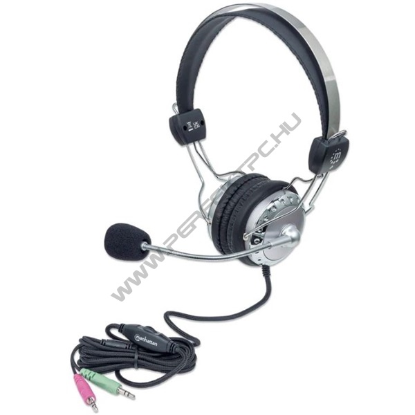 Manhattan Fejhallgató - Sztereó fejhallgató, 2.5m vezeték, Fekete-ezüst