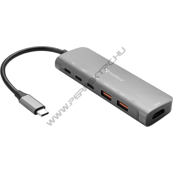 Sandberg Notebook Dokkoló - USB-C Dock HDMI + 2xUSB-A + 2xUSB-C + PD100W