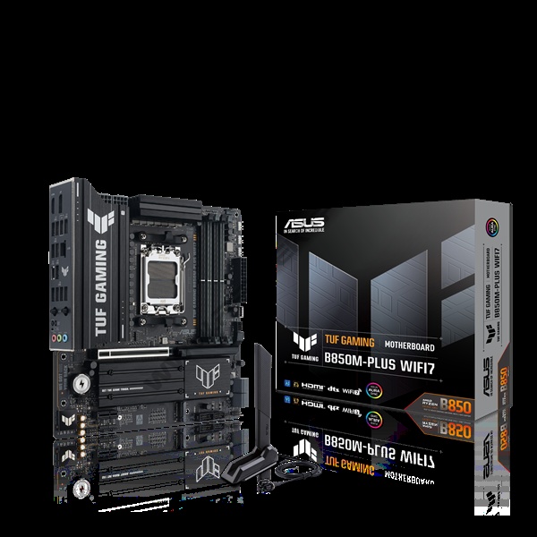 Asus Alaplap - AMD TUF GAMING B850M-PLUS WIFI7 AM5 (B850, ATX, 4xDDR5 8000+MHz, 4xSATA3, 3x M.2, HDMI+DP)