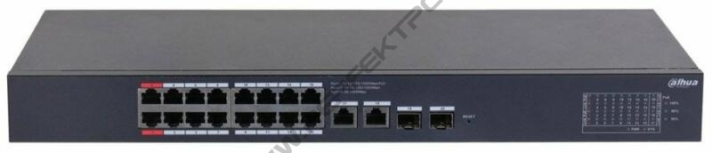 Dahua Mendzselhető PoE switch - CS4220-16GT-240 (Cloud menedzsment; 16x 1Gbps at/af PoE; 2x 1Gbps; 2x 1Gbps SFP; 240W)
