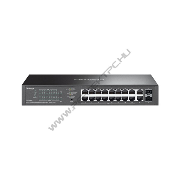 TP-Link Switch Menedzselhető PoE - ES220GP (Omada; 18x 1Gbps; 16x af/at PoE+ port; 2x SFP port; 150W)