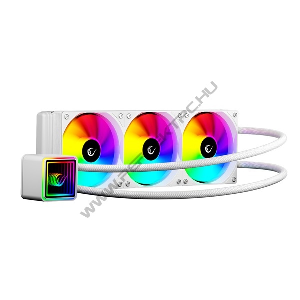 Rampage CPU Water Cooler - INFINITE V360 (Mágneses kijelző, 36,9dB max., 98,54 m3/h; 3x12cm, A-RGB LED, fehér)