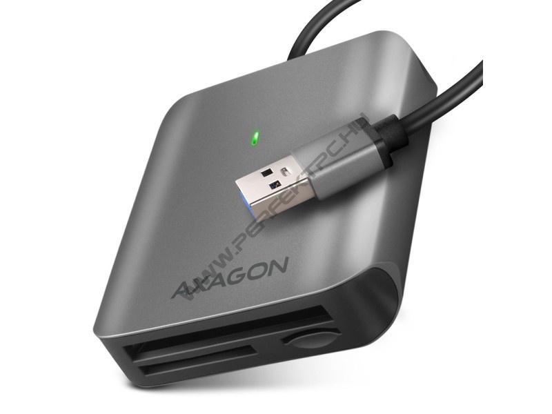 Az alumínium 3in1 memóriakártya-olvasó AXAGON CRE-S3 SUPERSPEED USB 3.2 Gen 1 interfésszel támogatja az SD és microSD kártyák minden jelenlegi verzióját, beleértve az SDXC és microSDXC kártyákat is, akár 2TB kapacitással. Támogatja a legfeljebb 128PT kapacitású CF-kártyákat is. Az USB 3.2 Gen 1 (USB 3.0) segítségével a kártyaolvasó az USB 2.0 interfészes olvasókkal szemben jelentősen magasabb adatátviteli sebességet ér el. Az UHS-II kártyák akár 156 MB/s (full-duplex) vagy 312 MB/s (half-duplex) sebességet is elérhetnek, a régebbi USH-I kártyák (maximális sebesség 104 MB/s) támogatása magától értetődő. Az olvasó az összes kártyahelyen lévő kártyákkal való egyidejű munka és a közöttük történő közvetlen másolás lehetőségével fog tetszeni önnek. Az olvasó elegáns alumínium teste puha felülettel rendelkezik az ujjlenyomatok csökkentése érdekében. A telepítés nagyon egyszerű - elég az olvasót a számítógép USB portjába illeszteni, és a többi művelet már teljesen automatikusan zajlik. Az olvasó ideális kiegészítő a modern UHS-II és CF-kártyákat használó photó amatőrök és profik számára. Kártyaolvasó – három kártya hely, következő formátumokat támogatja: • Micro SD foglalat: microSD, microSDHC, microSDXC, TransFlash. • SD foglalat: Secure Digital, SDHC, SDXC, MultiMedia Card, MMC 4.0, MMC Dual Voltage, MMC mobile, RS-MMC, miniSD, MMC Micro adapter. • CF foglalat: Compact Flash, CF Type I. Az olvasó az alábbi flash kártya specifikációkat támogatja: • SD 1.0/1.1 (SD - Secure Digital, max. 2GB). • SD 2.0 (SDHC - Secure Digital High Capacity, akár 32GB). • SD 3.0 (SDXC - Secure Digital eXtended Capacity, akár 2TB). • SD 4.0 (SDXC - Secure Digital eXtended Capacity, akár 2TB). • MMC és eMMC 3.x/4.0/4.1/4.2/4.3/4.4/4.5/5.0 (8-bit). • CF 6.0 (UDMA 0 - UDMA 7, akár 128PB). • Támogatja az SD 3.01 és SD Jukebox alkalmazásokat (CPRM funkciók). • Támogatja az Ultra High Speed busz UHS-II (FD156/HD312) sebességét, akár 156 MB/s Full Duplex, illetve 312 MB/s Half Duplex sebességgel. • Ultra High Speed UHS-I támogatás (SDR12/SDR25/SDR50/DDR50/SDR104) akár 104 MB/s sebességig. • ECC (Error Correction Code) funkció és CRC (Cyclic Redundancy Check) funkció támogatása. • 3 LUN – fájlkezelőkben az olvasó három külön lemezként jelenik meg. • FAT 12/16/32, NTFS, exFAT (FAT 64) fájlformátum támogatás. További tulajdonságok: • SuperSpeed USB - USB 3.2 Gen 1 interfész (előzőleg USB 3.1 Gen 1 / USB 3.0). • Kompatibilis továbbá USB 3.2 Gen 2 interfésszel, visszafele USB 2.0 és USB 1.1 kompatibilis. • Támogatja a 5000 / 480 / 12 Mb/s (Superspeed / High / Full speed) átviteli sebességet. • Teljes Plug and Play és Hot Swap támogatás. • USB-A apa csatlakozóval csatlakoztatható. • Támogatja a telefonos microUSB csatlakoztatást OTG adapterrel. • USB-C csatlakozóval rendelkező telefonok csatlakoztatásának támogatása USB-C USB-A adapter használatával. • USB-busz kártyaolvasó tápforrás (bus-power). • Zöld LED, amely jelzi a számítógép USB-portjához való csatlakozást (állandó fény) és az adatátvitelt (villog). • Méretei 64 x 60 x 15 mm, a rögzített kábel hossza 15 cm. • Súly 53 g. Támogatott operációs rendszerek: • MS Windows 7 / 8 / 8.1 / 10 / 11 vagy újabb, Windows Server 2008 / 2012 / 2016 / 2019 / 2022 és újabb (32- és 64-bites Windows verzió támogatás), Mac OS X 10.x és újabb, Linux 2.4.x és újabb, Android összes verzió. • Megjegyzés: Az illesztőprogramokat az operációs rendszer tartalmazza, ezek automatikusan telepítésre kerülnek. Nincs szükség más drivert telepíteni, és el sem érhetők. A csomagolás tartalma: • SuperSpeed USB kártyaolvasó, • telepítési útmutató CZ / DE / DK / ENG / ESP / FIN / FR / GR / HR / HU / IT / NL / PL / PT / RO / RU / SK / SWE / BG / CN / TR / ARA, • bolti állványra akasztáshoz nyílással ellátott.