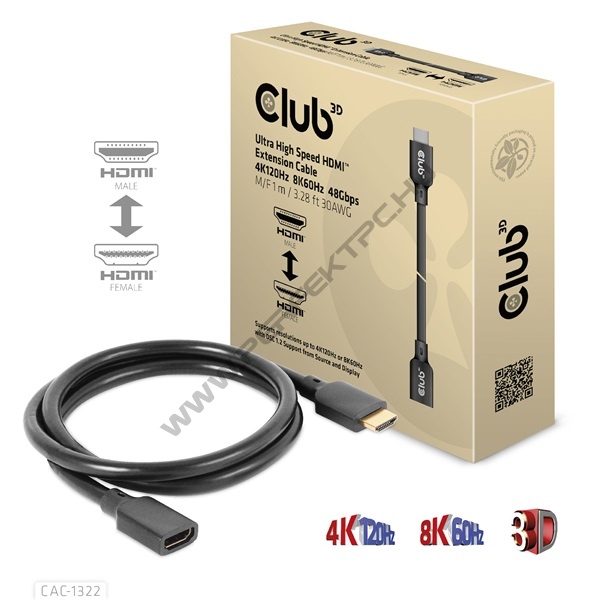 Club 3D Kábel - CAC-1322 (HDMI 2.1 Ultra High Speed, 4K120Hz 8K60Hz, 30AWG, 48Gbps, 1m, M/F)