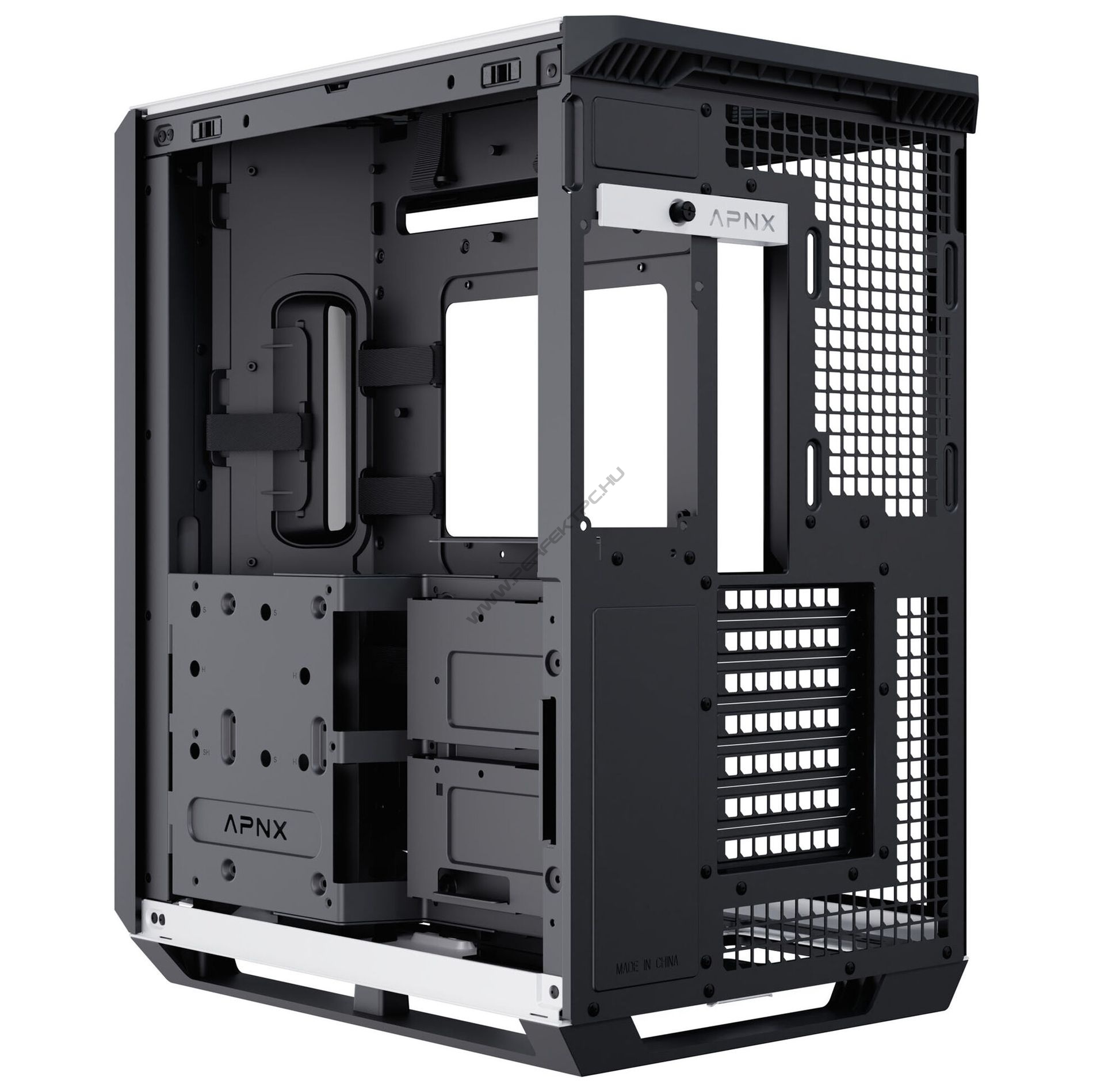 Számítógépház APNX V1 midi, edzett üveg, fekete-fehér-fa