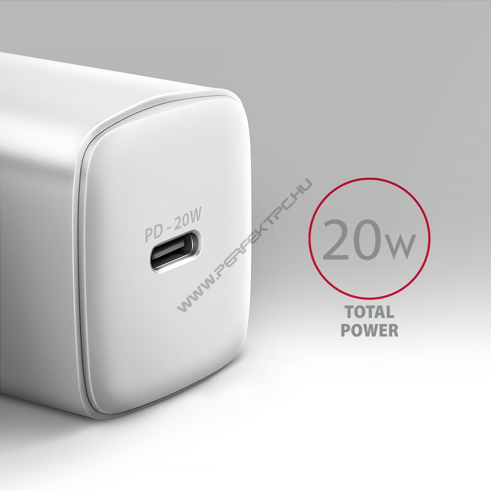 Hálózati töltő AXAGON ACU-PD20W PD3.0 & QC4+ 20w, Fehér